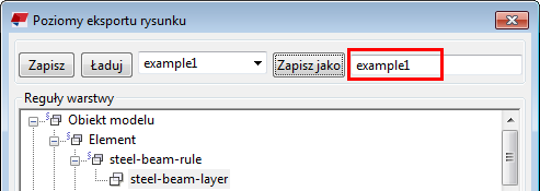 - Przejdź na zakładkę Opcje warstw i wczytaj ustawienia reguły warstw zapisane wcześniej pod nazwą przykład1.