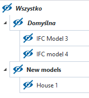Należy pamiętać, że widoczność warstwy nie wpływa na widoczność modelu, co oznacza, że ikona oka modelu jest widoczna, mimo że wszystkie warstwy są ukryte.