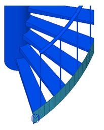 Komponent Tworzenie trójkątów (19) pozwala tworzyć blachy trójkątne lub profile dla powierzchni podwójnie zakrzywionych, np. podłużnic schodów spiralnych. Powierzchnia podwójnie zakrzywiona jest tworzona przez umieszczenie obok siebie wielu płaskich blach trójkątnych. Blachy trójkątne zostają ze sobą zespawane, aby umożliwić ich rozwinięcie. W razie potrzeby blachy trójkątne można rozwinąć używając komponentu Rozwinięcie powierzchni (21).