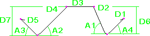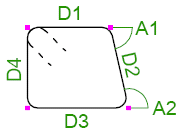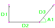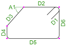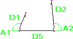 Identyfikatory typu gięcia w poniższej tabeli to wewnętrzne, zakodowane na stałe typy Tekla Structures. Wymiary ramion (D1, D2 itd.) oraz kąty gięcia (A1, A2 itd.) prętów zbrojeniowych to wewnętrzne wymiary i kąty Tekla Structures. Możesz mapować wewnętrzne typy gięcia Tekla Structures np. na typy gięcia globalne lub charakterystyczne dla danego projektu oraz wewnętrzne wymiary i kąty Tekla Structures na atrybuty konkretnych szablonów. Można to zrobić w pliku rebar_schedule_config.inp.