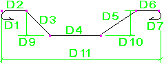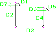 Wymiary gięcia prętów zbrojeniowych są obliczane tak, aby wymiary ramion (D1, D2 itd.) odpowiadały krawędzi zewnętrznej lub przedłużeniu końca pręta zbrojeniowego. Łączna długość jest obliczana zgodnie z osią pręta zbrojeniowego.