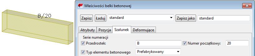 Plik historii numberinghistory.txt po utworzeniu i numeracji jednej belki betonowej B/20: