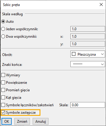 Ta opcja zaawansowana ma zastosowanie tylko w przypadku tworzenia lub aktualizowania znaków zbrojenia na otwartym rysunku.