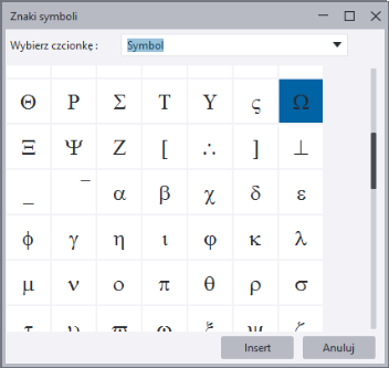 . Zostanie wyświetlona lista 5 ostatnio wstawionych symboli znaków oraz lista często używanych symboli znaków. Aby wyświetlić okno dialogowe