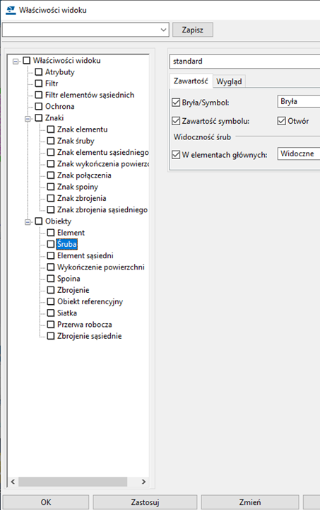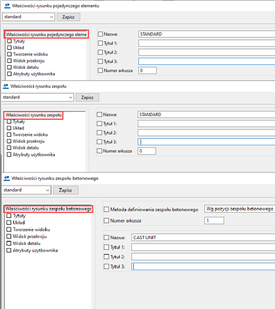 Właściwości rysunku pojedynczego elementu, zespołu i zespołu betonowego