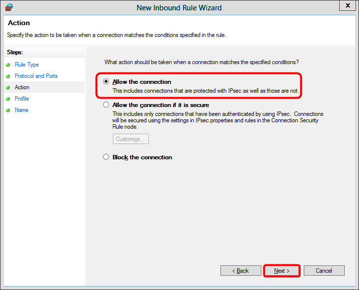 Upewnij się, że ustawienia zapory zezwalają na następujący ruch: