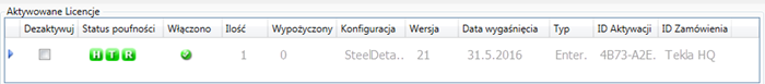 W obszarze Aktywowane Licencje na zakładce Licencje widoczne są informacje o aktywowanych licencjach. W tym miejscu można również dezaktywować licencje.