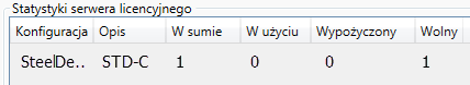 W obszarze Statystyki serwera licencyjnego na zakładce Statystyka widoczne są informacje o użyciu licencji.