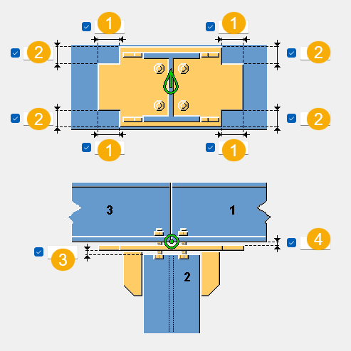 Bolt spacing. Use a space to separate bolt spacing values. Enter a value for each space between bolts. For example, if there are 3 bolts, enter 2 values. |