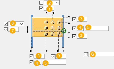 Define which bolts are deleted from the bolt group. Enter the bolt numbers of the bolts to be deleted and separate the numbers with a space. Bolt numbers run from left to right and from top to bottom. |
