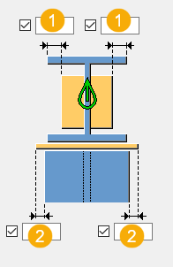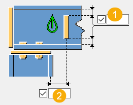 End plate edge distance from the secondary part flange. You can control the column end plate size in the secondary part axis direction. Positive values move the end plate edge towards the centre. |