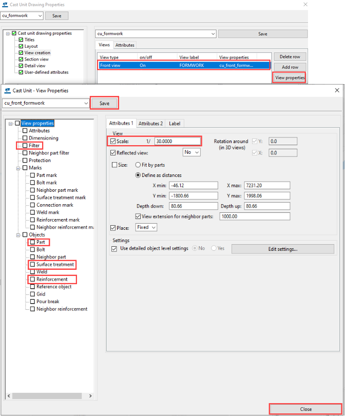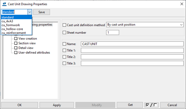 For more information about cast unit drawings, see Create fabrication drawings and Cast unit drawing properties.