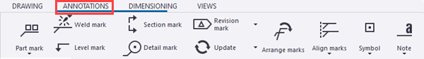 As this is your first project, we recommend that you create a steel fabrication drawing using predefined settings from your environment, and then modify the drawing manually in drawing mode as necessary. The instructions below apply to assembly drawings.