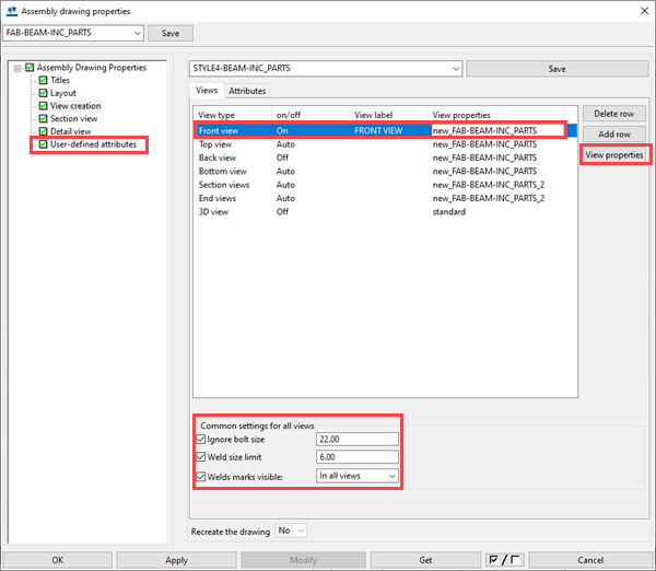 For more information about assembly drawings, see Create fabrication drawings and Assembly drawing properties.