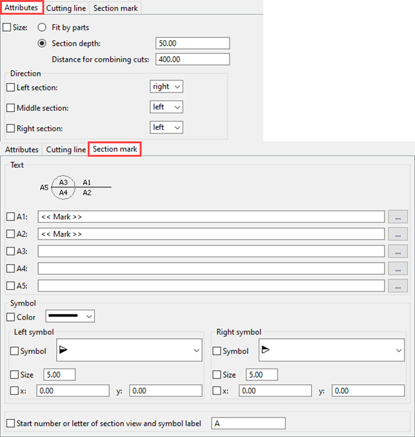 (2) Section A-A created automatically, manual marks and dimensions