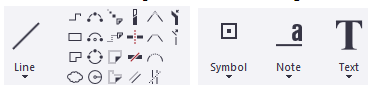 Some examples building objects, dimensions, marks, texts, and clouds: