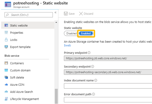 Configure an Azure Storage Account to host the point cloud data