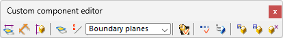 Use the tools on the Custom component editor toolbar, for example, to create distances, select planes, and to save the component.