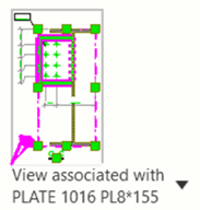 You can validate and control the association of the section views to objects in fabrication drawings through the associativity rule list. Tekla Structures selects the associated object for the section view automatically at view creation and shows it in the associativity label. You can also change the currently associated object.
