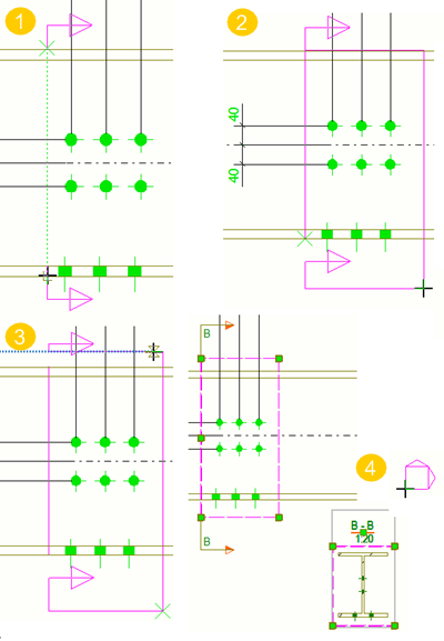 (1) The first two picked points indicate the position of the section plane in the original view.