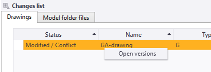 You can open the Drawing versions dialog from the Changes list. Select the changed drawing, right-click and select Open versions to view the drawing versions and the changes made to the drawing.