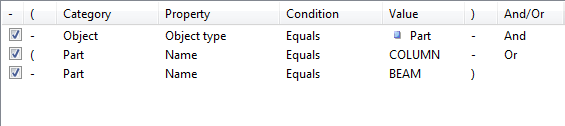 In the second and third filter rules, define that the part name must be BEAM or COLUMN: