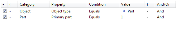 - In the Value list, select Part for the first rule and Reinforcing bar for the second rule.