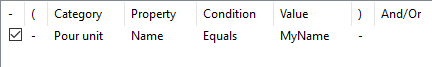 - In the Property box, enter POUR_UNIT.POUR_OBJECT.POUR_TYPE.
