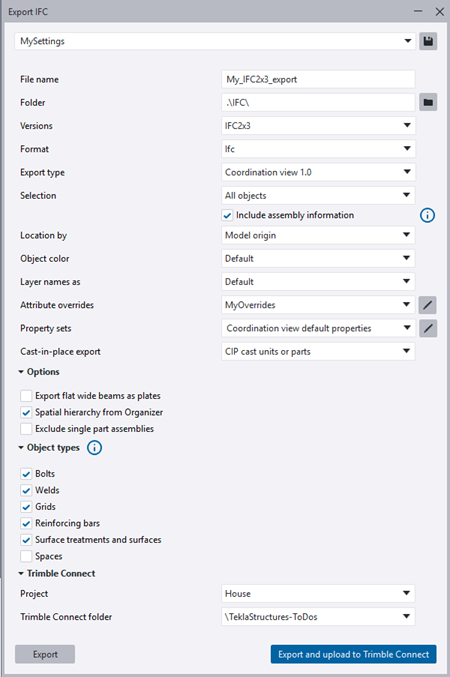 export an IFC file and upload it directly to Trimble Connect. See below for instructions.