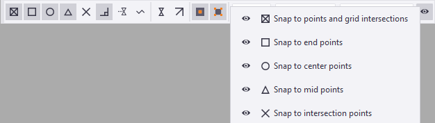 You can define which selection switches or snap switches are visible and which are hidden on the selected toolbar. Company administrators can distribute the customized toolbars to the whole organization.