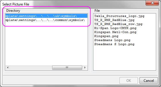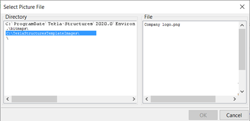 When you open the drawing that contains the images that you inserted in the template, Tekla Structures first looks for the images in the model folder and then in the \symbols folder in the current environment.
