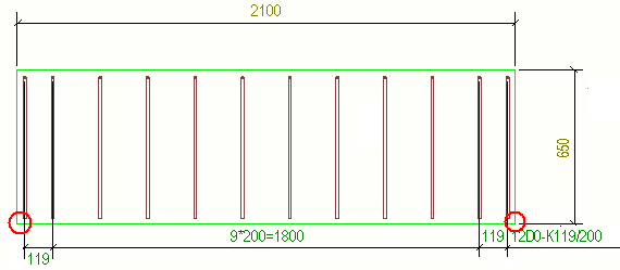 На чертеж, содержащий группу арматурных стержней, можно вручную добавить замыкающие размеры до кромки детали.