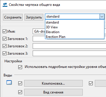 Ниже приведен пример списка файлов настроек для чертежа общего вида: