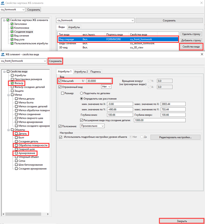 Дополнительные сведения о чертежах ЖБ элементов см. в разделах Создать рабочие чертежи и Свойства чертежей ЖБ элементов.