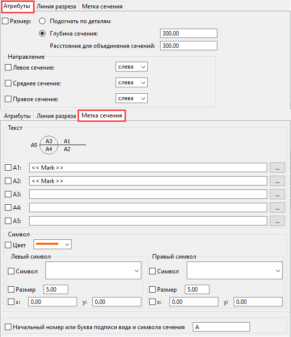 (2) Сечение A-A (созданное автоматически) с добавленными вручную метками и размерами