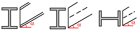 В зависимости от относительного угла балки, соединения можно классифицировать как наклонные, с уклоном или с поворотом. Значение угла может быть в пределах от –90 до 90 градусов.