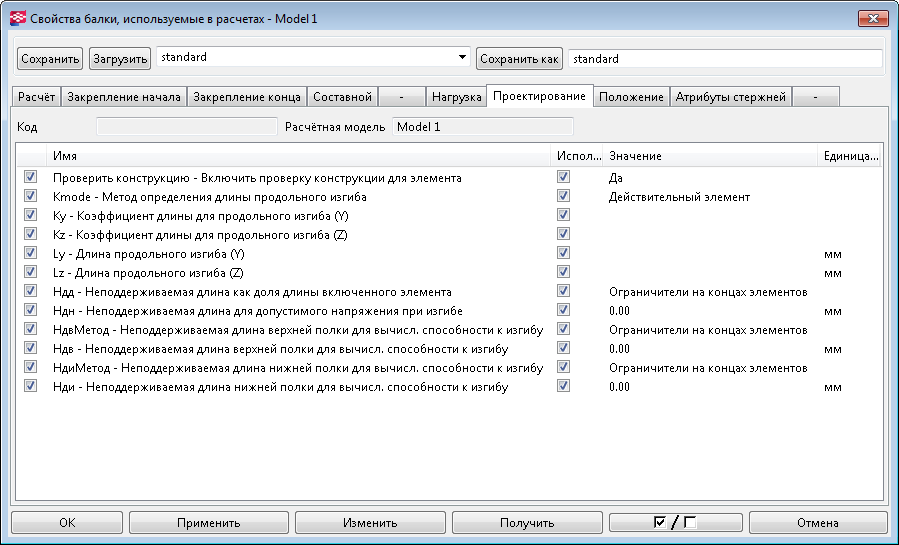 Для отдельных расчетных деталей можно определять свойства проектирования. Свойства проектирования — это свойства, которые могут изменяться в соответствии с проектными нормами и материалом детали (например, параметры проектирования, коэффициенты и пределы).
