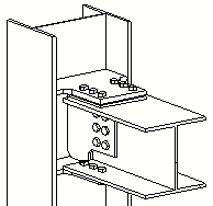 Крепление к полке колонны на болтах для восприятия изгибающего момента. Второстепенная деталь наклонена в вертикальной плоскости. |