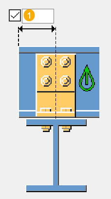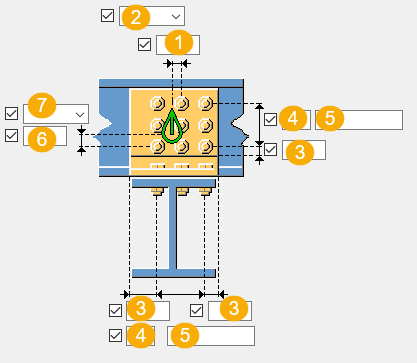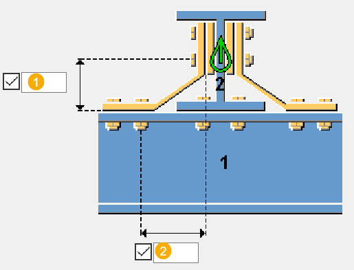 Определите вертикальное расстояние от нижней кромки прогона до первого болта в боковой пластине. По умолчанию это расстояние составляет половину высоты прогона. |