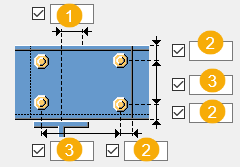 Расстояние между болтами. Значения расстояний между болтами разделяются пробелами. Введите по значению для каждого расстояния между болтами. Например, для 3 болтов вводится 2 значения. |