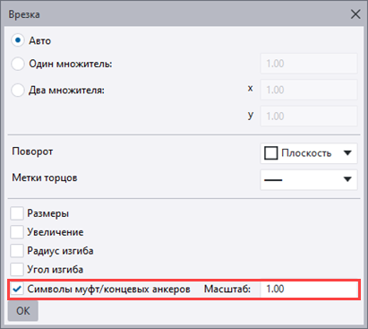 Отображение символов муфт и концевых анкеров в спецификациях арматуры