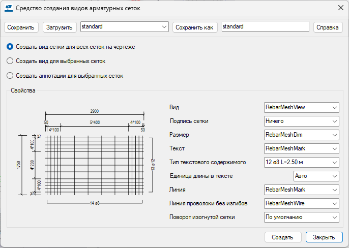 Средство создания видов арматурных сеток также можно запустить программно, например с помощью командной строки или расширения.