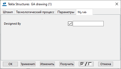В диалоговом окне пользовательских атрибутов чертежа общего вида появилась созданная вами вкладка.