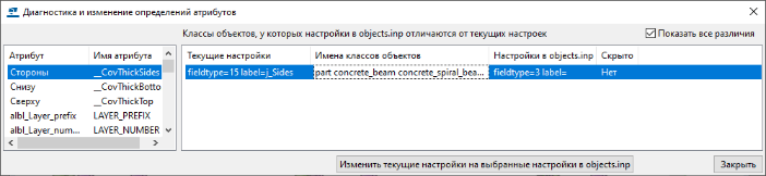 Появится диалоговое окно Диагностика и изменение определений атрибутов.