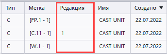 Метка редакции в поле Метка. |
