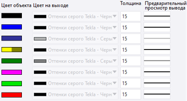 Если вы выбрали цвет печати Оттенки серого Tekla или Черно-белый на вкладке Параметры, настройка Цвет на выходе отключена.