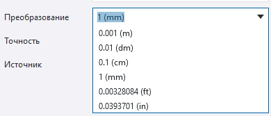 - Значение единицы для масштабирования безразмерных значений пользовательских атрибутов. Коэффициент преобразования добавляется для того, чтобы безразмерные значения можно было преобразовывать для соответствия глобальным единицам, используемым в файлах IFC. Эти коэффициенты необходимы для единиц площади и объема.