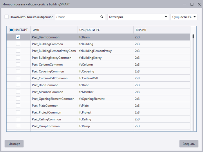 Можно также исключить наборы свойств и свойства buildingSMART.