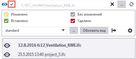 - Установите флажок Эта модель новее, чтобы указать, что файл, путь к которому отображается в поле, новее другого участвующего в сравнении файла. Если файл был обновлен, он отображается в поле автоматически, и флажок устанавливается.
