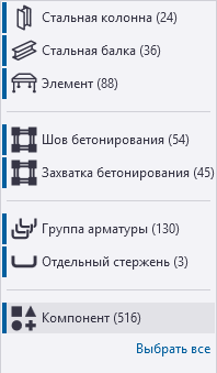 Чтобы проверить, какие объекты вы выбрали в модели или на чертеже, откройте список выбранных объектов, нажав кнопку Список типов объектов